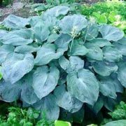Hosta undulata ‘Albomarginata’ – Хоста волнистая травянистое долгоживущее декоративно лиственное растение неописуемой красоты. Куст высотой 60 см, высота цветоносов 80 см, состоит из множества листьев. Размер листьев 19х9 см. Листья темно-зеленые с тонкой кремово-белой каймой. Цветки колокольчатые среднего размера, собраны в рыхлую кисть. Окраска цветков сине-фиолетовая. Аромат отсутствует. Время цветения июнь-август, цветут на протяжении 2-3 недель. Растение зимостойкое, но на зиму рекомендуем замульчировать. Растение ценится исключительно за высокую декоративность кустов. Практически не повреждается болезнями и вредителями. Хоста волнистая устойчивая к солнцу.