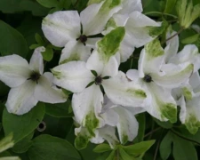 Цветы: белоснежные колокольчатые, диаметром 6 см. В начале цветения украшены салатово-зелёными штрихами, которые со временем исчезают. Тёмно-бордовые тычинки добавляют контраста.