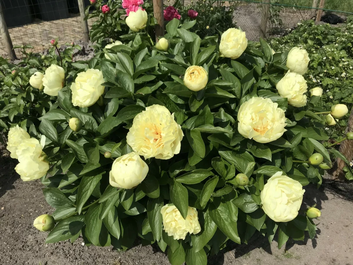 Цветки крупные, махровые, диаметром до 23 см, лимонного оттенка, который в процессе цветения сменяется на более светлый — кремовый, с возможным присутствием лёгких жёлтых полос и мелких розовых пятен.