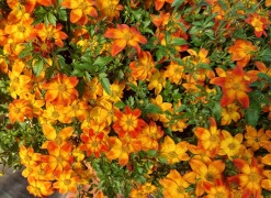 Биденс — травянистое растение с мощными прямостоячими стеблями. В среднем ширина и высота куста не более 0,8–0,9 м. Побеги украшают пышная насыщенно-зелёная листва, при этом листовые пластины сильно рассечённые.Цветки биденса жёлтого окраса. Начало цветения приходится на последние весенние недели, а заканчивается оно с наступлением осенних заморозков. Когда соцветие завянет, на его месте формируются семена. После того как они полностью вызреют, их можно собрать и использовать для посева.В переводе с латыни «биденс» означает «двузубчатый», что имеет отношение к его семенам. На их поверхности имеются щетинки, внешне схожие с очень маленькими зубцами. При помощи них семена прицепляются к одежде человека или шерсти животных, что способствует их распространению.