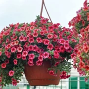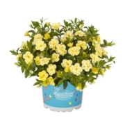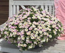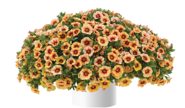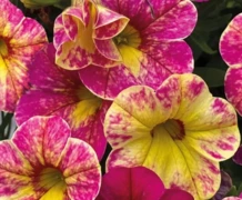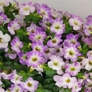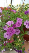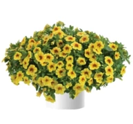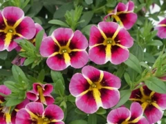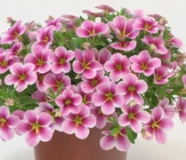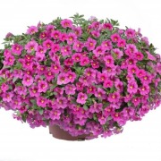 Калибрахоа (Calibrahoa) — многолетник из семейства Паслёновые, который пришёл в сады из Южной Америки.Краткое описание:Цветки: в природе обильно цветут мелкими цветками фиолетового цвета диаметром 2,5–3 см. Однако селекционерами созданы гибриды с венчиками белого, жёлтого, розового, красного, малинового, коричневого и всех оттенков синего цвета. Характерная особенность цветков — контрастная окраска «горлышка»: жёлтая, тёмно-оранжевая или коричневая.Листья: мелкие, длиной 3–4 см, удлинённой формы, слегка опушенные.Стебли: негибкие, одревесневающие, больше похожи на ветви кустарника, чем травянистого растения, могут достигать в длину 0,5–2 м.Благодаря длинным побегам и обильному цветению в течение всего тёплого сезона это растение чаще всего выращивают в подвесных кашпо или высоких вазонах.