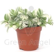 Традесканция альбифлора — редкое и необычное растение с крепкими стеблями и нежными листьями. Ланцетные листья гладкие, кремового цвета с зелёными полосками. В молодом возрасте растение имеет прямостоячий вид, в зрелости — стелющийся.