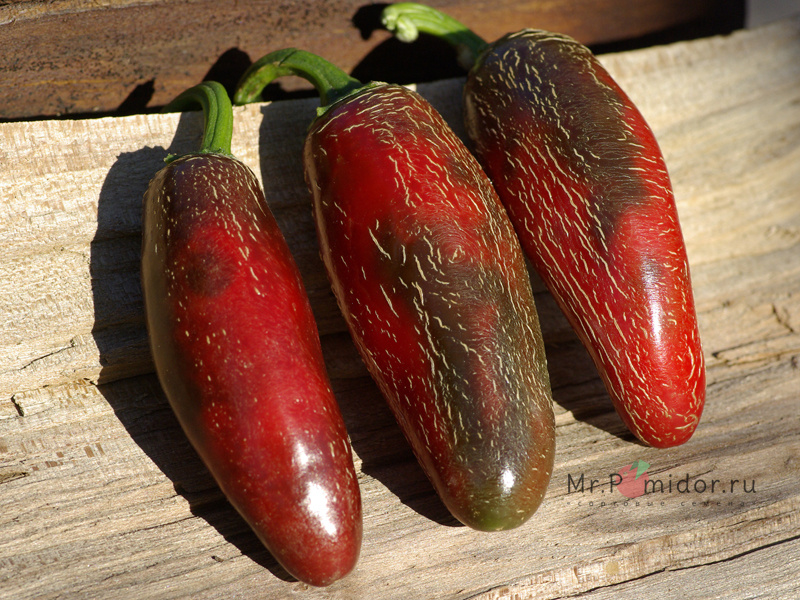 Созревшие красные плоды этого сорта коптят, в результате такой обработки они приобретают оригинальный шоколадно - дымный привкус. Высота куста до 1 м. Требуется подвязка к опоре. Стручки сочные, ароматные, острота в пределах 2000-8000 SHU. В технической фазе плоды тёмно-зелёного цвета, в биологической зрелости– красного и более острые. Срок созревания 90-110 дней. Неприхотливый и урожайный сорт. Для свежего потребления, консервирования, сушки.