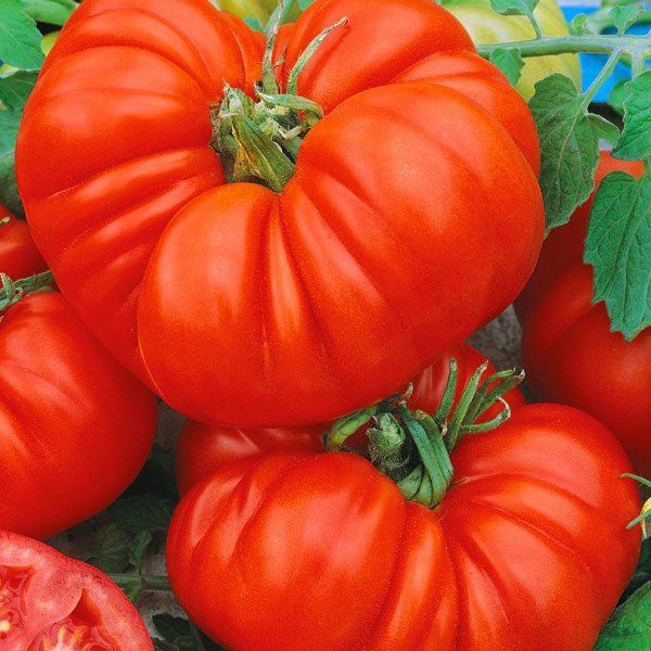 Среднеспелый, высокоурожайный томат для теплиц. Томат–гигант. Мясистые, многокамерные, сильно ребристые и плотные плоды диаметром до 20 см. Цвет яркий, насыщенно красный, без пятна у плодоножки. Куст высотой 1,5-1,6 метра, требующий подвязки к опоре и пасынкования. В стадии зрелости плоды ярко-красного цвета, весом 300-600 грамм (до 1 кг), сочные, классического помидорного вкуса. Эти помидоры идеальны для свежего потребления, хорошо подходят они также для приготовления соков, соусов.