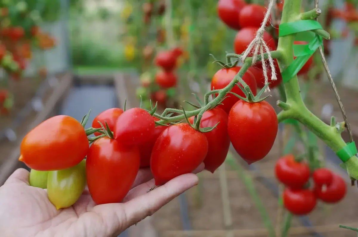 Томаты ярко-красного цвета, обратнояйцевидной формы, с аккуратным носиком.