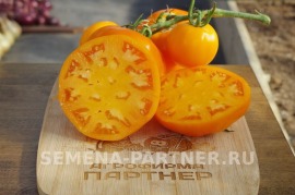 Среднеранний полудетерминантный сорт. Высота растений — до 1,5 м. В плодоношение вступает на 105-115 день с момента всходов. Первое соцветие закладывается над 9 листом, последующие — через 2-3 листа. Междоузлия короткие. Кисть полусложная, с 5-7 крупными плоскоокруглыми плодами насыщенного оранжевого цвета. Масса томатов — 150-200 г, некоторые экземпляры могут достигать 400г. Мякоть очень мясистая, многокамерная, с высоким содержанием сухого вещества и сахара. Вкус плодов очень хороший, сладкий. Сорт рекомендован для диетического питания. Плоды используют на салаты и для приготовления паст и соусов. Томаты лежкие, хорошо дозариваются. Сорт устойчив к основным заболеваниям томата, отличается хорошей устойчивостью к недостатку света и тепла, не любит переувлажнения. Рекомендуется формировать в 2-3 стебля с обязательной подвязкой.