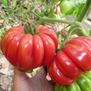 Среднеспелый индетерминантный сорт для выращивания в открытом грунте и плёночных теплицах. Период от всходов до начала созревания 110-115 дней. Растение высотой до 150 см, требует подвязки и формирования. Плод плоскоокруглый, сильноребристый. Масса 250-350 (до 800) г. Окраска незрелого плода зеленая с темно-зеленым пятном у плодоножки, зрелого – ало-красная. Число гнезд более 6. Плоды прекрасного вкуса. Ценность сорта: крупноплодность, высокая урожайность. Универсальное использование.