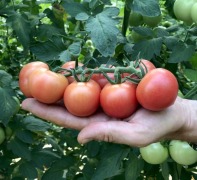 Индетерминантный гибрид коктейльного типа с ультраранним периодом плодоношения. Уже через 80-85 дней от момента всходов вы сможете насладиться вкусом этих томатов. Растения мощные, с укороченными междоузлиями и минимальным количеством пасынков. Первое соцветие закладывается над 6-7 листом, последующие — через 1-2 листа. Кисти простые, с 8-10 округлыми плодами красивого розового цвета. Плоды двухкамерные, плотные, сочные и очень сладкие, массой 35-40 г. Томаты прекрасны как в свежем виде, так и в цельноплодном консервировании. Лежкость и транспортабельность плодов отличные, подходит для сбора урожая целыми кистями. Гибрид устойчив к вирусам бронзовости, томатной мозаики, скручиванию листьев, а также к кладоспориозу, фузариозному и вертициллезному увяданию; хорошо завязывает плоды при любых погодных условиях. Плотность посадки — 3-4 растения/м². Рекомендуется формировать растения в 1-2 стебля. Урожайность в защищенном грунте — до 19,0 кг/м², в открытом грунте — не менее 13,0 кг/м².