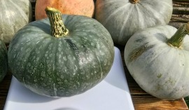Тыквина сплюснутая, слегка сегментированная. Фон светло-серый. Рисунок в виде густой сетки темно-серой окраски. Кора тонкая, кожистая, на разрезе зеленовато-желтая. Мякоть оранжевая, средняя, хрустящая, нежная, сочная, сладкая