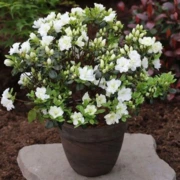 Азалия японская Schneeperle — миниатюрный полувечнозелёный декоративный кустарник. Вырастает высотой до 30–40 см и шириной 1,0–1,5 м. Крона плоская, широкая, компактная.