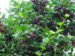 Ягоды средние (2,5-4,5 г), темно-красные, почти черные, с тонкой кожицей.