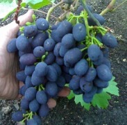 Грозди: массивные (400-600 г, реже до 1,5 кг), с крупными темно-фиолетовыми ягодами 31 x 19 мм и весом от 6 до 8 г.