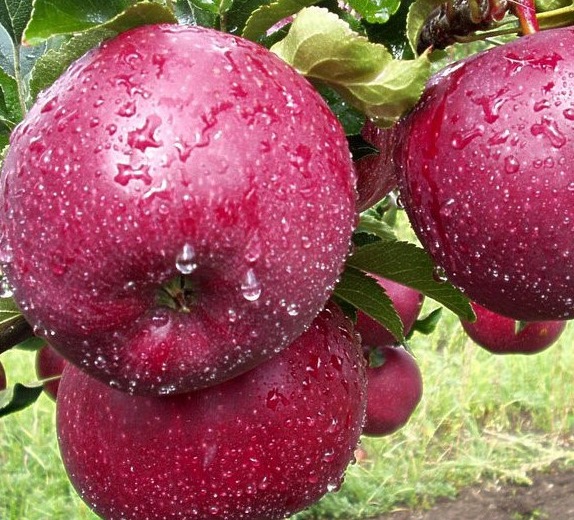 Яблоко, достигшее зрелости, имеет малиновый окрас,становящийся бордовым после сбора