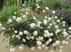 Отличается густой, раскидистой, полустелющейся кроной, белоснежными цветками и продолжительным, обильным цветением.